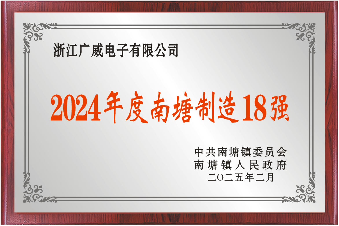 喜報(bào)|廣威電子榮膺南塘制造18強(qiáng) 2025-02-21 2025年2月21日,在南塘鎮(zhèn)政府舉辦的經(jīng)濟(jì)高質(zhì)量發(fā)展大會(huì)上,浙江廣威電子有限公司榮膺“202...